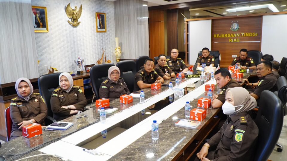 Kajati Riau Dr. Sutikno SH., MH., didampingi Wakajati bersama jajaran Aspidsus mengikuti arahan JAM Pidsus secara daring di Rupatama. (02/04/2026)