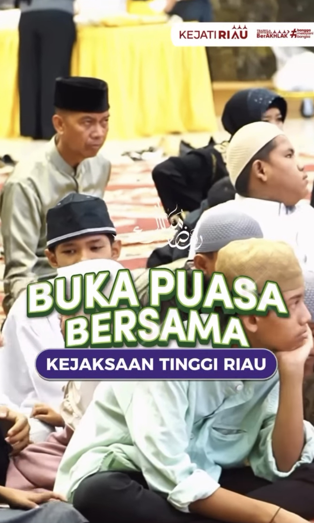 Keluarga besar Kejaksaan Tinggi Riau menggelar kegiatan buka puasa bersama yang diikuti oleh seluruh pegawai serta anak-anak dari panti asuhan di Sasana HM.Prasetyo Kejati Riau. (09/03/2026).