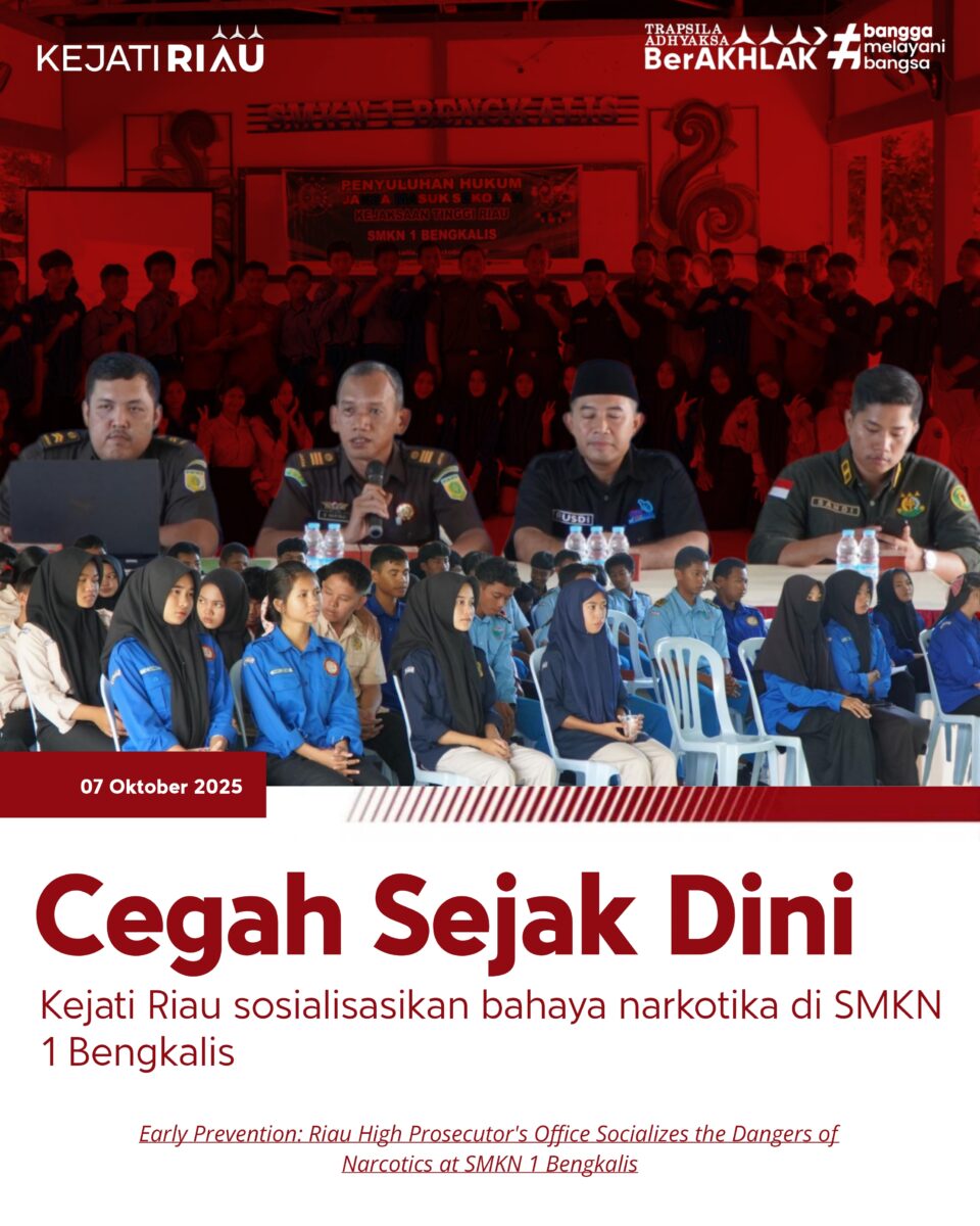 Kejati Riau melalui program Jaksa Masuk Sekolah (JMS) kembali hadir memberikan penyuluhan hukum kepada para pelajar di SMK Negeri 1 Bengkalis dengan peserta para siswa-siswi dan tenaga pendidik yang mengikuti kegiatan secara antusias. (07/10/2025)