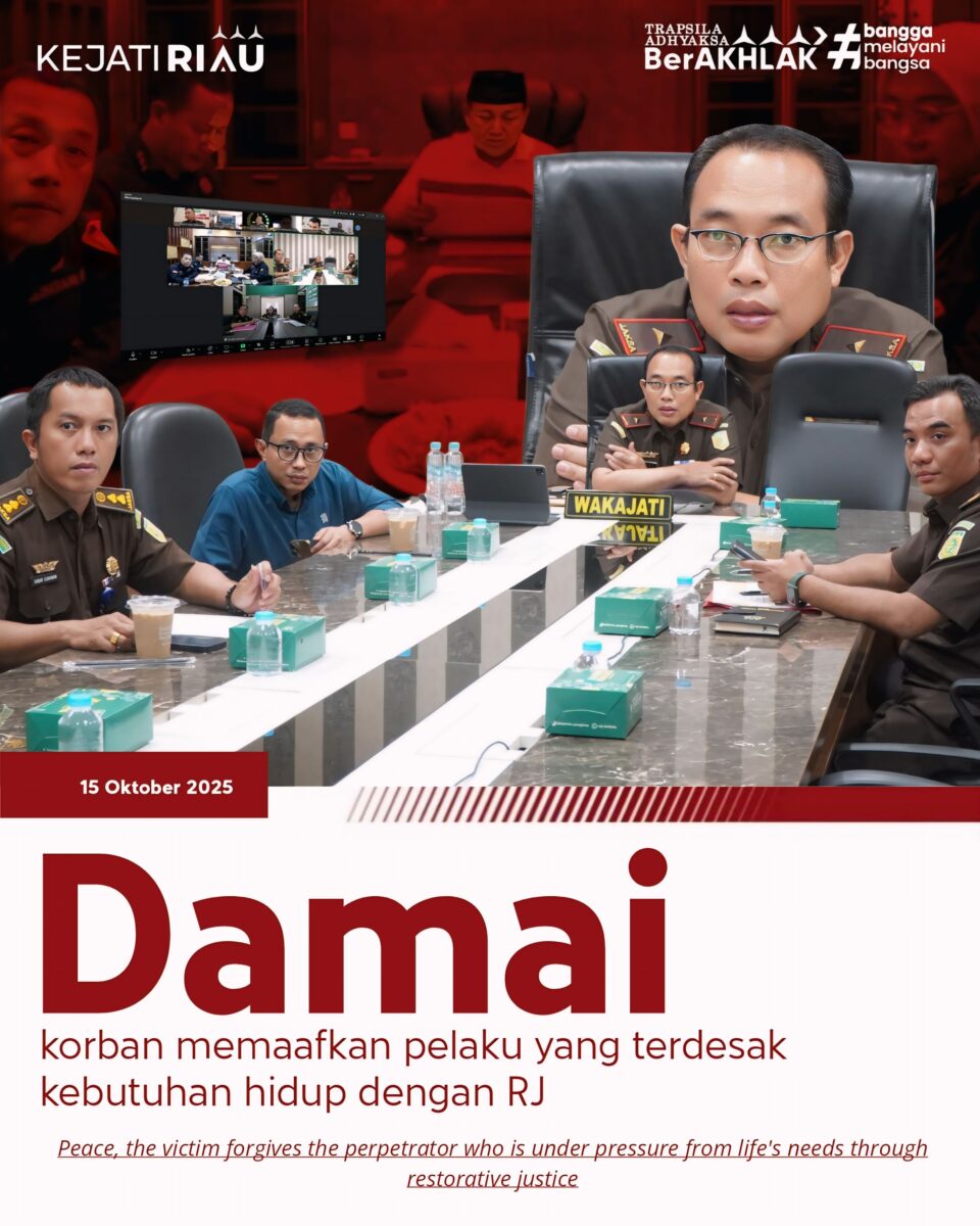 Plt. Kajati Dedie Tri Hariyadi SH., MH., beserta jajaran ajukan permohonan Restorative Justice atas perkara asal Kejari Meranti kepada JAM Pidum melaui Dir A Dr. Undang Mugopal SH., MH., secara virtual dari rupat Waka. (15/10/2025)