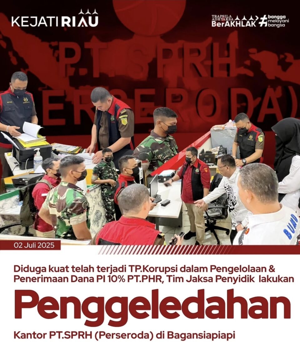 Selasa, 02 Juli 2025 pukul 11.30 – 18.00 Wib Tim Jaksa Penyidik telah menggeledah Kantor PT.SPRH dan Rumah para Direksi yang berada di Bagansiapiapi.