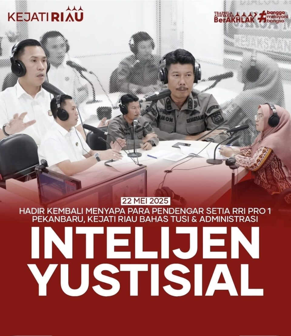 Kejati Riau kembali menggelar program “Jaksa Menyapa” dengan menghadirkan narasumber utama Kasi I Dr. Simon S.H., M.H., dan Kepala Kasi Penkum Zikrullah S.H., M.Η. yang dipandu Tuti Fitri SH., disiarkan langsung melalui Studio I RRI Pekanbaru.(22/05/2025)