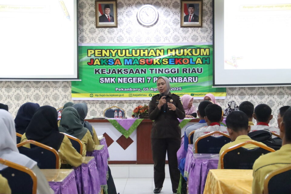 Melalui Program JMS, Kejati Riau kembali menjumpai para pelajar, kali ini di SMKN 7 Pekanbaru dalam kegiatan bertajuk “Ancaman Pengaruh LGBT dalam Perkembangan Anak, Remaja, hingga Dewasa” yang berlangsung di ruang pertemuan sekolah tersebut. (29/07/2025)