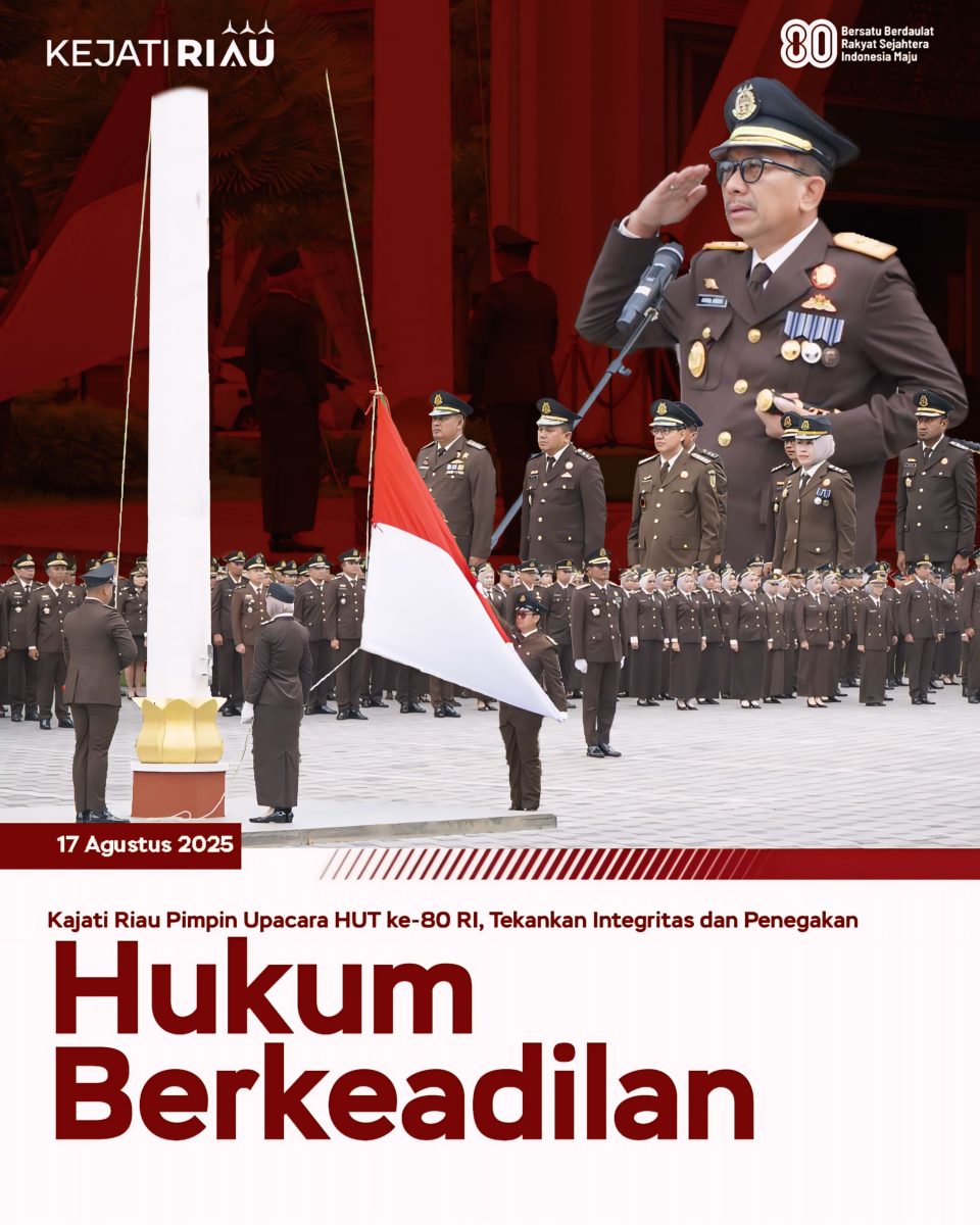 Kajati Riau Akmal Abbas, SH., MH., selaku inspektur upacara peringatan Hari Ulang Tahun ke-80 Kemerdekaan Republik Indonesia yang diikuti oleh seluruh pegawai Kejati Riau dan Kejari Pekanbaru di halaman Kantor Kejati Riau. (17/08/2025)