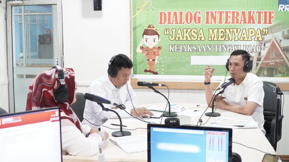 Antisipasi berbagai potensi ancaman, gangguan dan hambatan dalam suksesi pelaksanaan Pemilihan Kepala Daerah secara serentak tanggal 27 November 2024 mendatang, Kejati Riau melalui bidang Intelijen secara pro aktif lakukan langkah-langkah preemtif dan preventif dalam menjaga ketertiban dan kondufititas daerah selama pelaksanaan pilkada termasuk dalam pelaksanaan Program Jaksa Menyapa pukul 10.00-11.00 Wib di Programa 1 99.1MHz RRI Pekanbaru.(05/11/2024)