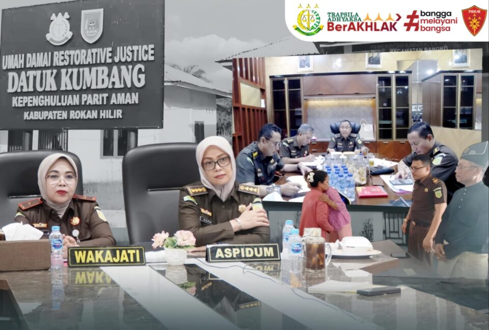 Wakajati Riau Rini Hartatie, SH., MH., memimpin pengajuan penghentian penuntutan berbasis keadilan restoratif kepada JAM Pidum melalui Direktur Oharda Nanang Ibrahim Soleh, SH., MH., terhadap perkara atas nama Tersangka Nurwati Br Pasaribu dari Kejari Rohil secara daring dari rupat Waka.(18/11/2024)