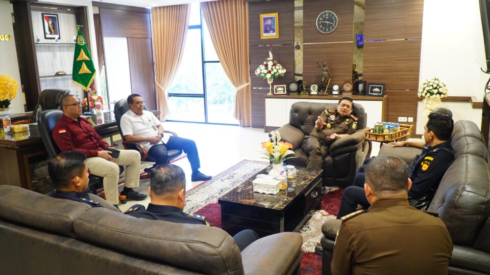 Kajati Riau Dr. Sutikno, S.H., M.H., didampingi Wakajti beserta jajaran Aspidsus menerima kunjungan Kakanwil Bea Cukai Riau Dwijo Muryono, S.A.P., di ruang kerja Kajati Riau.