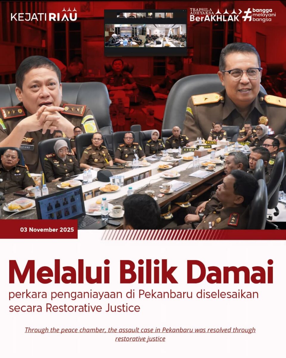 Setelah perkara dinyatakan P-21, para pihak sepakat untuk menempuh jalur perdamaian. Proses mediasi dilaksanakan di Bilik Damai Kejari Pekanbaru, difasilitasi oleh Jaksa Fasilitator, dan dihadiri oleh kedua belah pihak, tokoh masyarakat, serta penyidik. Dalam pertemuan tersebut, korban dengan tulus memaafkan perbuatan para tersangka, sementara kedua tersangka menyampaikan penyesalan mendalam serta berkomitmen untuk tidak mengulangi perbuatannya. Sebagai bentuk tanggung jawab moral, keduanya juga bersedia menjalani sanksi sosial sebagaimana tertuang dalam surat pernyataan yang telah ditandatangani bersama.