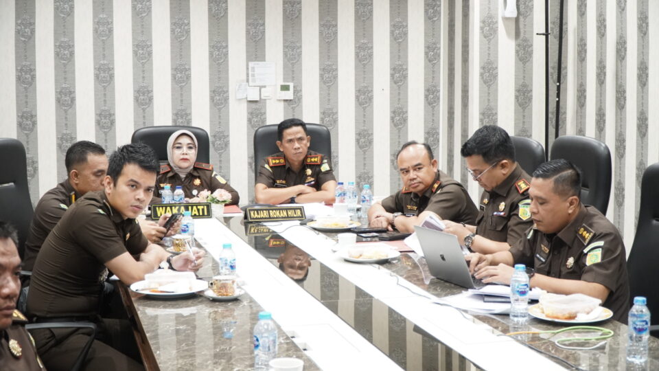 Wakajati Riau Rini Hartatie, SH.,MH. pimpin Pengajuan Penghentian Penuntutan Berdasarkan Keadilan Restoratif (RJ) kepada JAM Pidum Cq.Dir.Oharda Nanang Ibrahim Soleh, SH.,MH. dari Kejari Kampar, Rokan Hulu dan Kejari Rokan Hilir masing-masing 1 perkara yang diikuti langsung oleh para Kajari dari ruang Rapat Waka.(18/09/2024)
