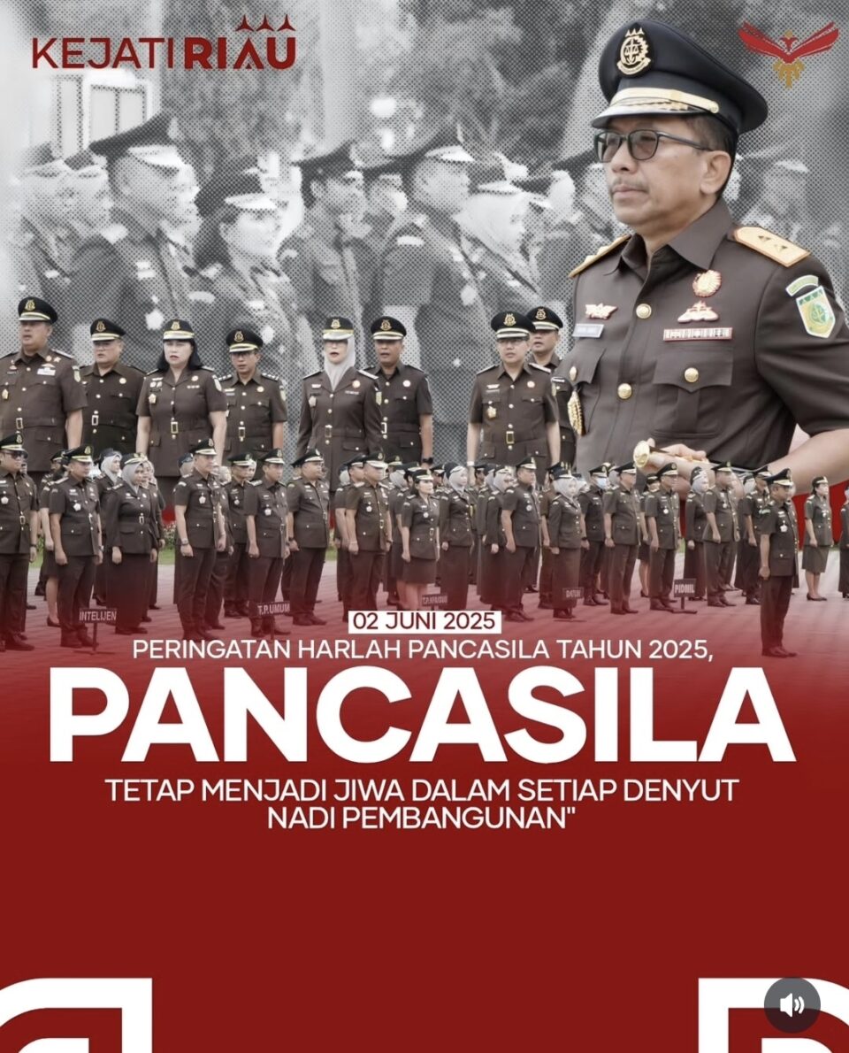 Menutup amanatnya, Kajati Riau menegaskan bahwa melalui upacara ini, seluruh jajaran Kejaksaan Tinggi Riau mempertegas komitmennya dalam membumikan nilai-nilai Pancasila secara nyata, serta terus berkontribusi dalam mewujudkan Indonesia yang berdaulat, adil, makmur, dan bermartabat.