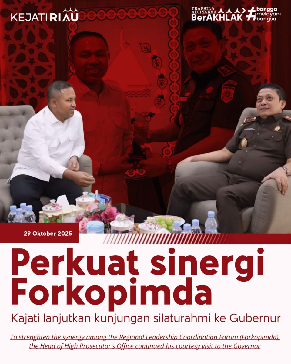 Sementara itu, Gubernur mengapresiasi kunjungan Kajati dan menyambut baik komitmen Kejati Riau dalam memperkuat kolaborasi dengan pemerintah daerah.