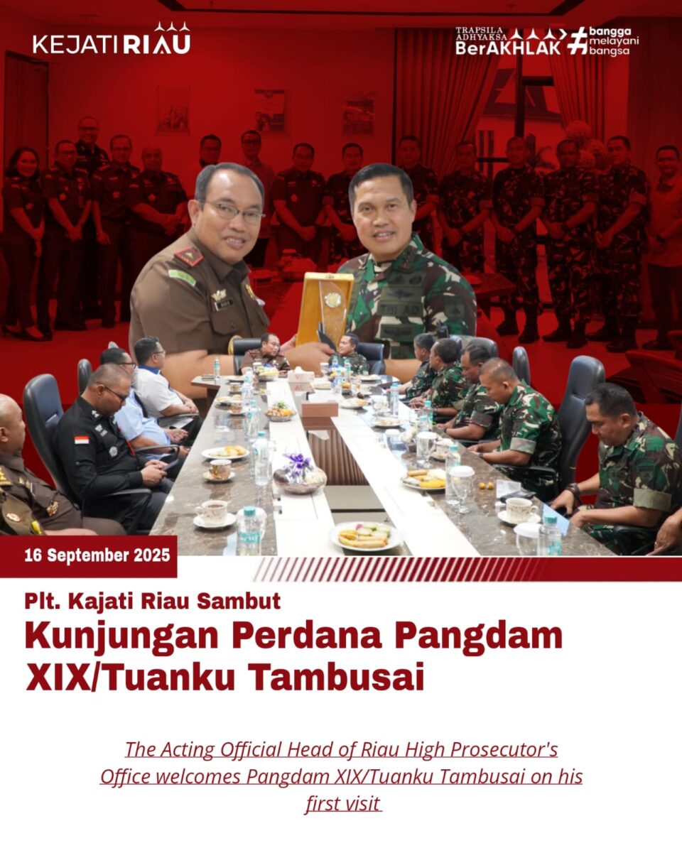 Melalui pertemuan ini, diharapkan hubungan kelembagaan antara Kejaksaan Tinggi Riau dan Kodam XIX/Tuanku Tambusai semakin solid, sehingga dapat terus bersinergi dalam menjaga stabilitas keamanan, mendukung penegakan hukum, serta memberikan pelayanan terbaik bagi masyarakat, bangsa, dan negara.