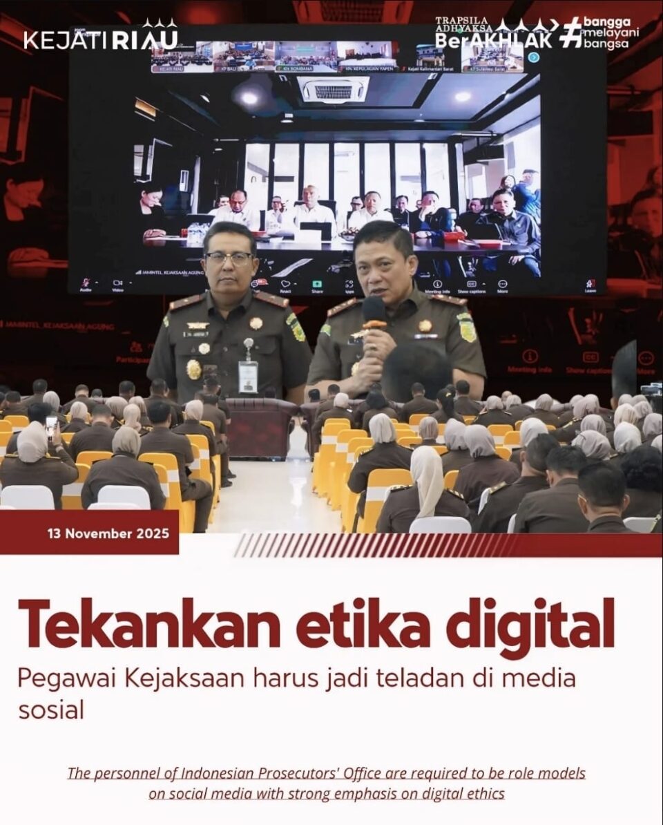 • Menjaga etika dan tanggung jawab bermedia sosial, dengan tidak memposting atau membagikan konten yang dapat menurunkan citra dan kehormatan institusi Kejaksaan.