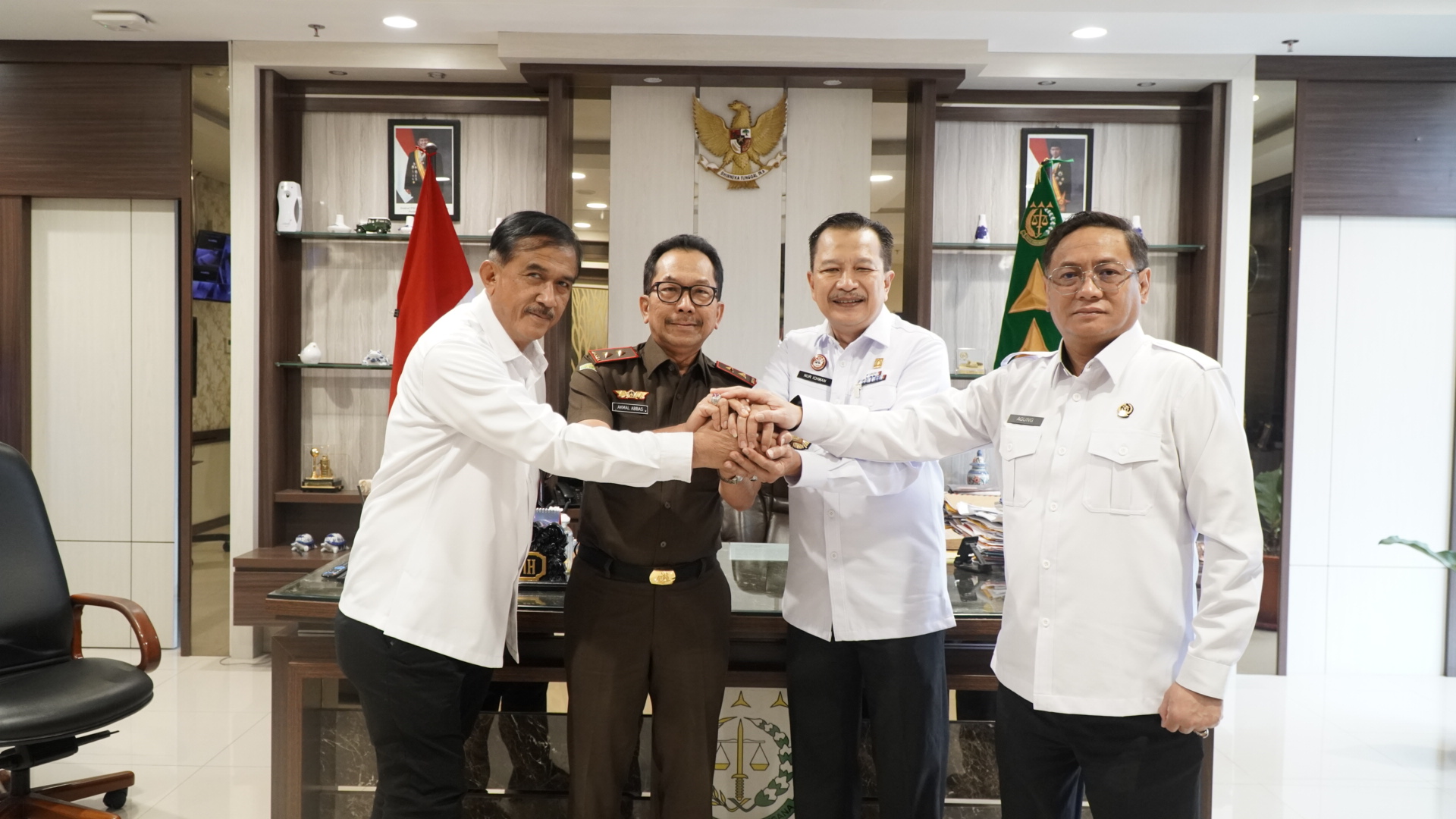 Kajati Riau Akmal Abbas SH., MH., menerima kunjungan Kakanwil Kum Riau Nur Ichwan, Kakanwil Ditjenpas Riau, Maizar, Bc.IP., S.Sos., M.Si., dan Kakanwil Ditjenim Riau, Agung Prianto, SH., MM. di ruang kerja Kajati.(22/01/2025)